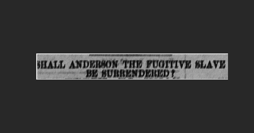 Digitized by the newspaper archive, “"Shall Anderson the fugitive slave be surrendered?",” Black Canadian History Exhibit, accessed December 5, 2025, http://omeka.uottawa.ca/mathieu-black-canadian-history-exhibit/items/show/460.